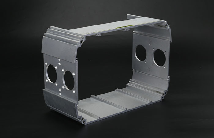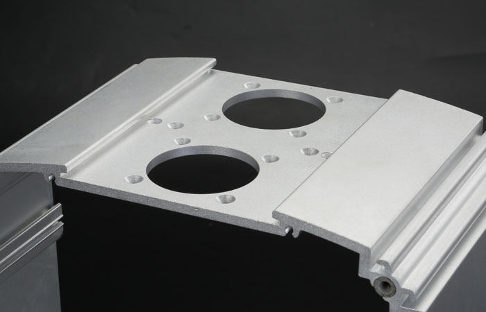 4.根據圖紙要求,鋁型材外殼將需要鉆銑的加工件鋸切后,用產品轉運車將產品轉運到加工區域進行數控加工,然后鉆銑槽。對缺口較少或相對簡單的零件,在普通鉆銑床上鉆孔時,應按照鋸銑床的操作規程進行調試。鉆孔、銑槽加工前,應符合互檢規程的要求,并對前道工序的加工部位進行檢查,看是否有誤差,防止不合格產品的發生。與此同時,制定自檢要求,防止不合格產品進入下道工序。